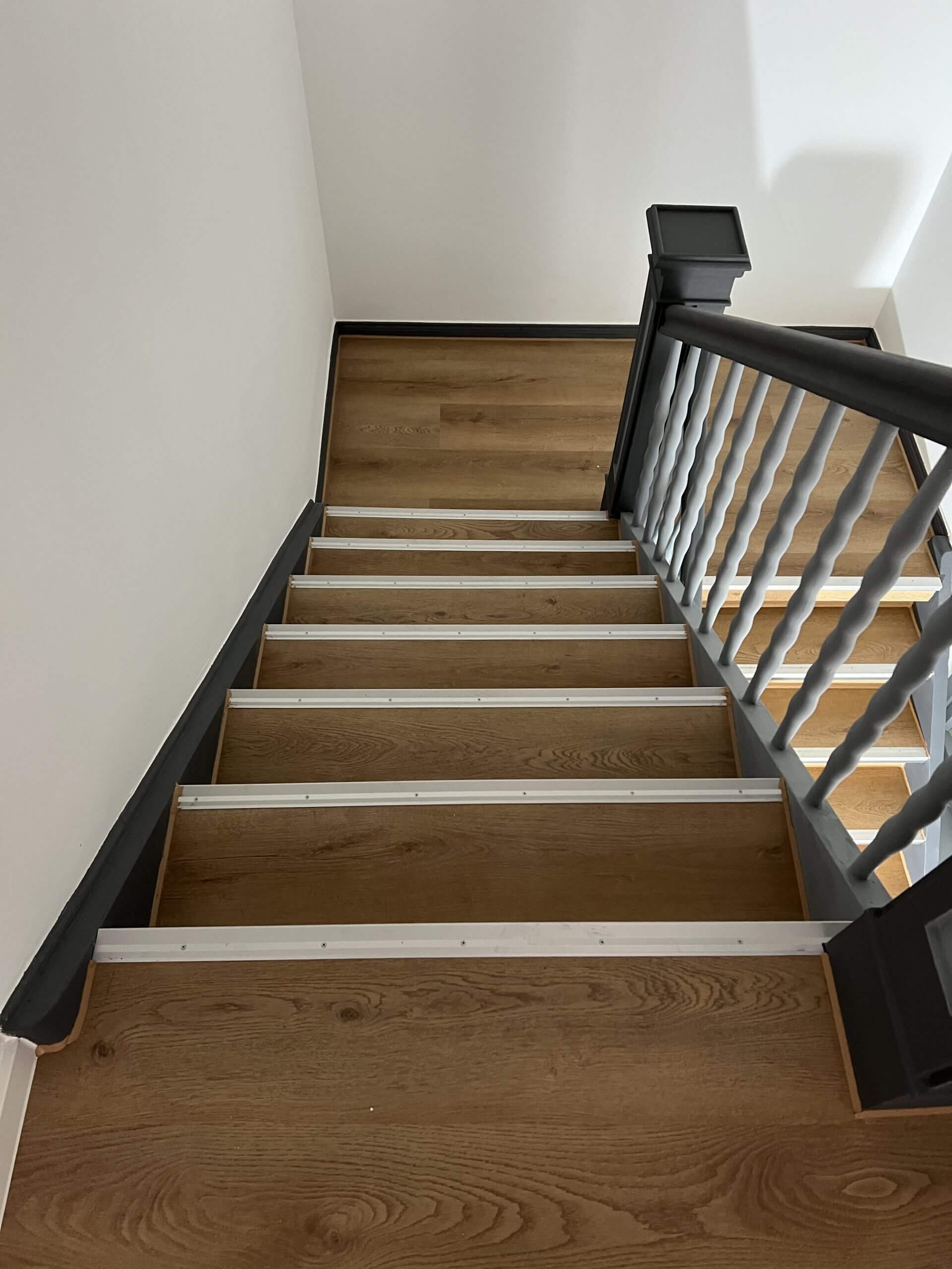 Komplett renoviertes Treppenhaus – neue Wände, Bodenbelag und Anstrich